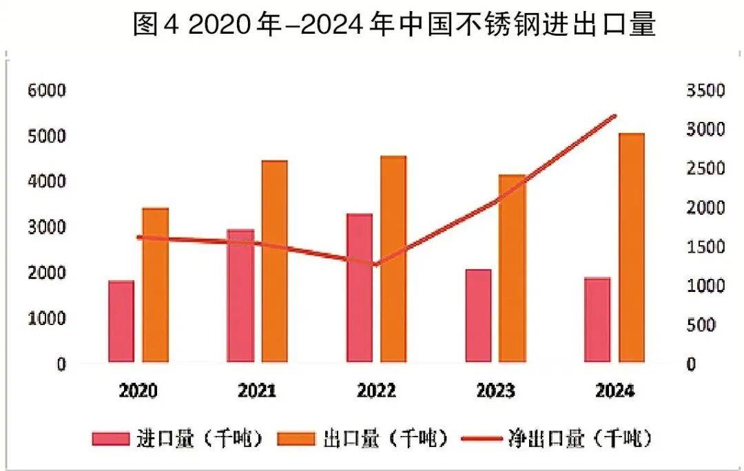 …☆“十四五▪•◇”期间,中国不锈钢行业实现了从单纯产品出口向“资源△▪、产能、技术◁、标准☆▼”协同出海的深刻转变□=▲。在进出口方面,2022年中国不锈钢进出口量创历史新高…□○,全年进口量达328.5万吨。随着“一带一路•★▼”市场开拓,中国不锈钢净出口量持续增长,2024年净出口量达316.6万吨,预计2025年净出口量将达350万吨。