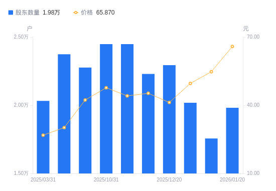 近一年(2025年2月28日至2026年1月20日)◁□•,华正新材A股股东户数从1▲.99万户▼▼◆,减低至1.98万户,降幅0.52%,区间股价上涨139.88%。