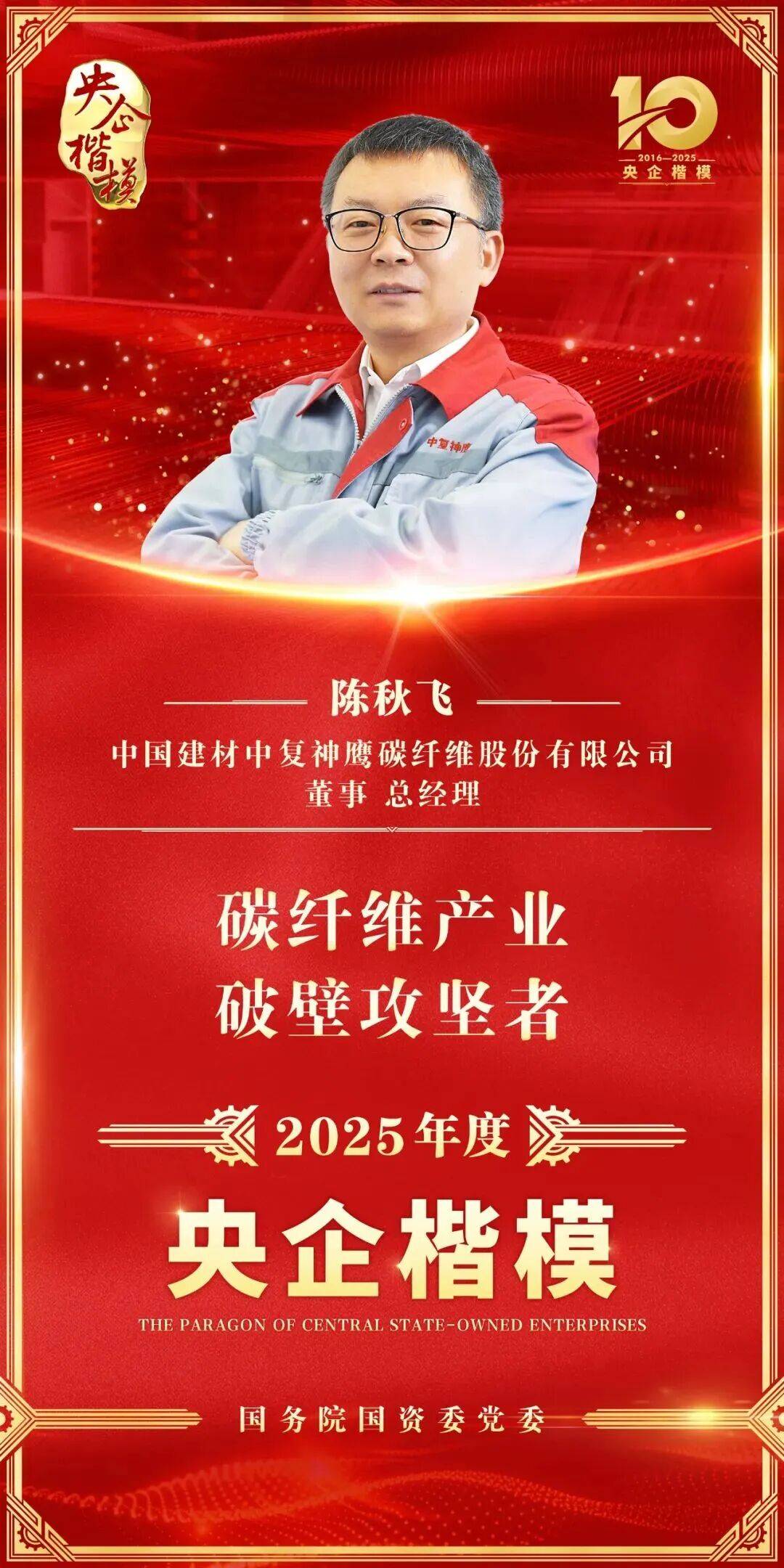 陈秋飞坚持“实战育人”:以生产线为课堂、难题为教材,手把手带年轻工程师;攻克技术时主动让渡荣誉。如今,团队走出30余名行业骨干,主导11项国家标准,拥有专利四百余项。这支高素质队伍既支撑中国建材中复神鹰领跑行业,更联动上下游协同创新,助力中国碳纤维产业标准引领的全面跨越。